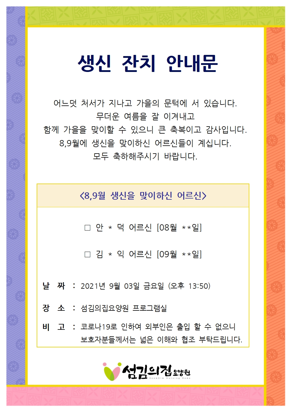 2021³â 8,9¿ù »ý½ÅÀÜÄ¡ ¾È³»¹®