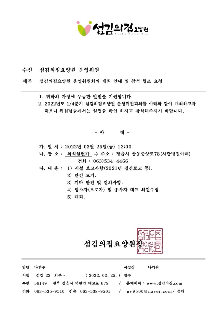 2022³â 1/4ºÐ±â ¿î¿µÀ§¿ø °³ÃÖ ¾È³» ÀÔ´Ï´Ù.
