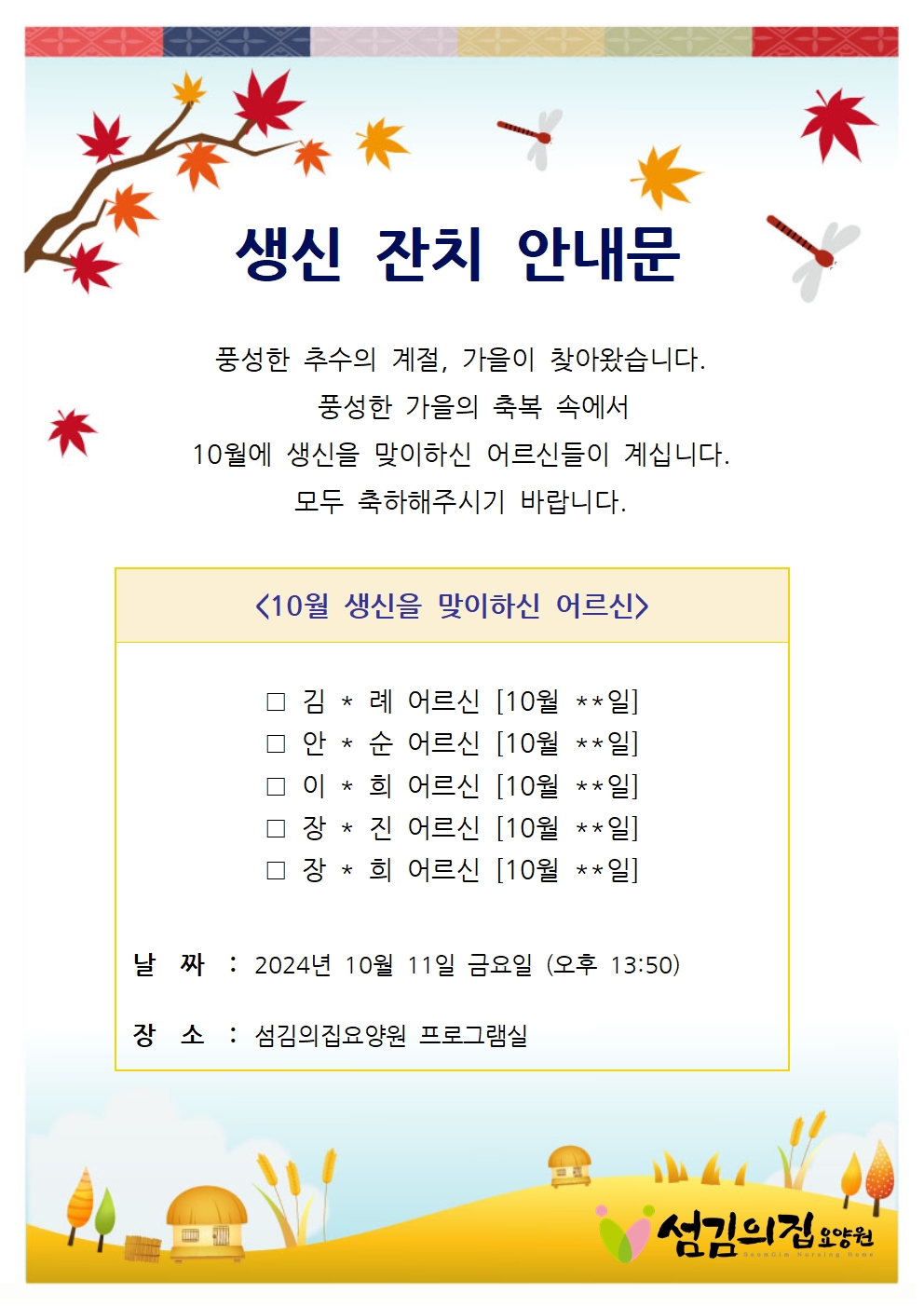 2024³â 10¿ù »ý½ÅÀÜÄ¡ ¾È³»¹®