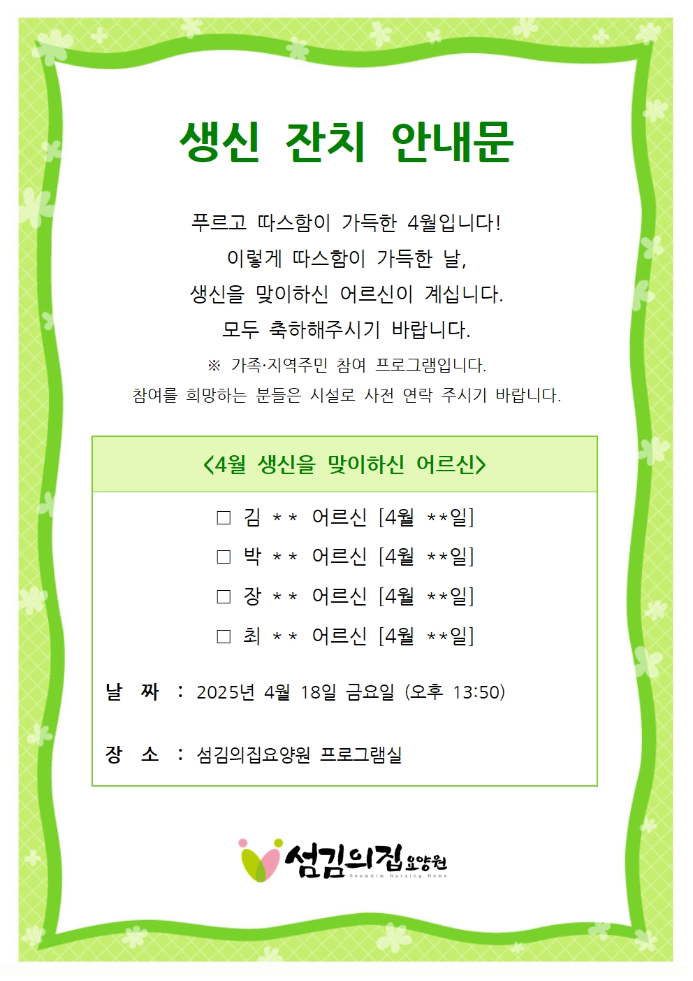 2025³â 4¿ù ÇÁ·Î±×·¥ °èȹ¼ ¹× »ý½ÅÀÜÄ¡ ¾È³»¹®
